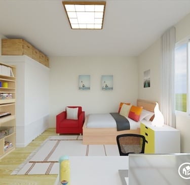A lovely mother reached out to me to assist her in helping to figure out the layout for her son’s 25sqm room. Until now the two siblings have been living together in the room, but as the sister decided to move to a different room, the aim became to create a fully functional aesthetically pleasing living space for her son by creating a cosy sleeping area and a living zone where he can feel well.