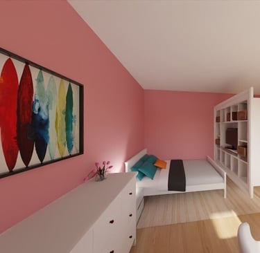 Az én meglátásom az, hogy soha nincs olyan, hogy sok a hely tárolni ezért a sok pici bútor helyett érdemes nagyobbat és funkcionálisakat választani. Itt szem előtt tartottam, hogy a bútorok még egy 15-18 éves tininek is megfelelők legyenek és ne kelljen ezeket 3 évente cserélni. A fehér színű bútor bármikor bármilyen színnel kombinálható a gyerek ízlésének függvényében. Merész választásnak tűnhet a fal színe, de egy 10 éves kislány szereti az élénkebb színeket a következő 3-5 éves tisztasági festés meg már beleesik a kamaszkorba, akkor meg úgy is ő fogja megmondani, hogy milyen színt akar látni a falon.
