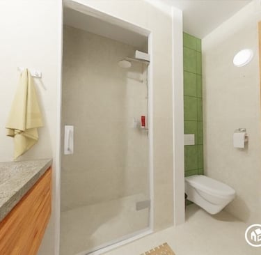 6: Design. A designt mindig a körülményekhez igazítjuk, és mindig a funkcionalitás az első! Nem mindegy, hogy a harmadik emeleten van az a fürdő, vagy a kertből megyünk be és nincs alatta pince. Eme utóbbi esetben - a burkolók örömére - kültéri csúszásgátlós lapot szoktam választani, mert az tovább bírja a strapát és még senki nem panaszkodott arra, hogy kár, hogy nem csúszik a fürdő tusolás után.